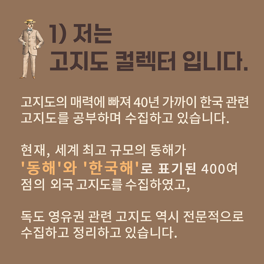 <<일본의 도발에 맞서 독도가 확실한 한국 땅임을 세계 최고 독도 고지도 컬렉션을 만들어 알리겠습니다.>>
